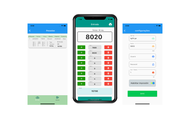 Al finalizar el pesaje, la aplicación registra los datos y los envía automáticamente a un servidor web. En caso de no contar con conexión en el dispositivo móvil, los datos quedarán almacenados y se sincronizarán tan pronto como se restablezca la señal. Si el sistema incluye una impresora opcional, al presionar el botón “Finalizar” en la aplicación, se generará automáticamente un ticket impreso con los resultados del pesaje.